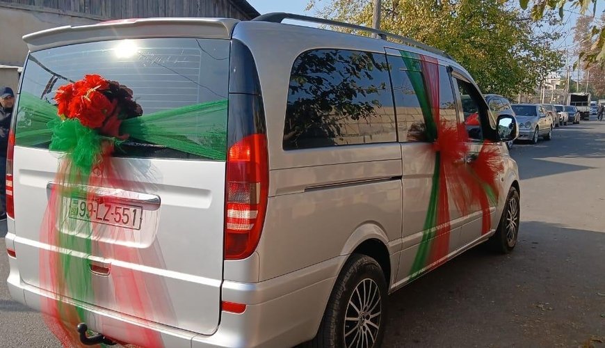 Ailəsi C.Muradlınin cənazəsini daşıyan avtomobili "bəy maşını"na bənzər qırmızı lentlə bəzəyib.