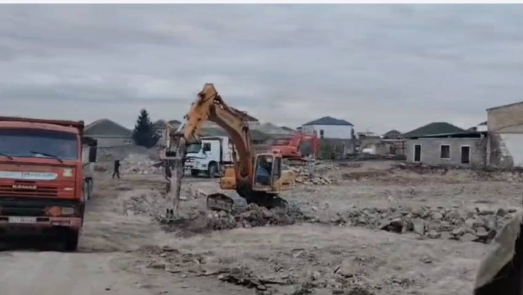 Həmin ünvanda ağır texnikalarla qazıntı və söküntü işləri aparılılaraq tikintiyə hazırlıq həyata keçirilir.